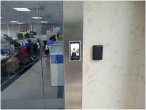 當員工要進入公司,首先需要將人臉對著人臉識別機,通過人工智能人臉識別,即可將人臉信息于云端后臺做比對,通過1對N的對比方法進行驗證,判斷是否能夠通過門禁進入公司,人臉的識別速度為0.3秒,在提高公司進出門禁的方便率的同時,也提高了進出人員的安全性。
