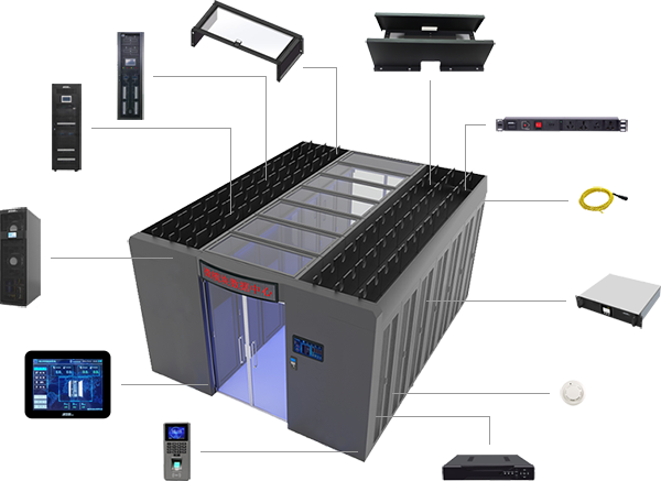 采用高度集成—體化設計理念:即機柜既是機房,機柜內(nèi)部高度集成所需設備:UPS不間斷電源系統(tǒng)、空調(diào)系統(tǒng)、智能配電系統(tǒng)、動環(huán)監(jiān)控系統(tǒng)、門禁系統(tǒng)、氣體消防、蓄電池等全部基礎設施。全模塊化設計,便于靈活配置和維護。模塊間標準接口,工廠化預制安裝調(diào)試,現(xiàn)場快速部署及維護。單機柜或單排多聯(lián)機柜部署,無需搭建冷熱通道。單機柜容量密度為3-W,UPS 備電時間15 分鐘-4 小時 (可依據(jù)需求配置)。