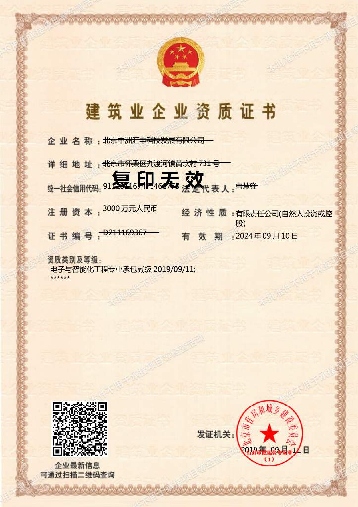 經(jīng)北京市住房和城鄉(xiāng)建設(shè)委員會(huì)批準(zhǔn),我公司獲得“電子與智能化工程專業(yè)承包貳級(jí)資質(zhì)”,本次資質(zhì)的獲得,標(biāo)志著公司在業(yè)務(wù)領(lǐng)域有了更大的拓展空間;對(duì)提升公司的市場(chǎng)競(jìng)爭(zhēng)力、拓展行業(yè)市場(chǎng)具有重大意義和作用。 公司也將為員工創(chuàng)造更大的發(fā)展平臺(tái),凝聚我們中洲人的力量,共同創(chuàng)造更輝煌的成績(jī)。